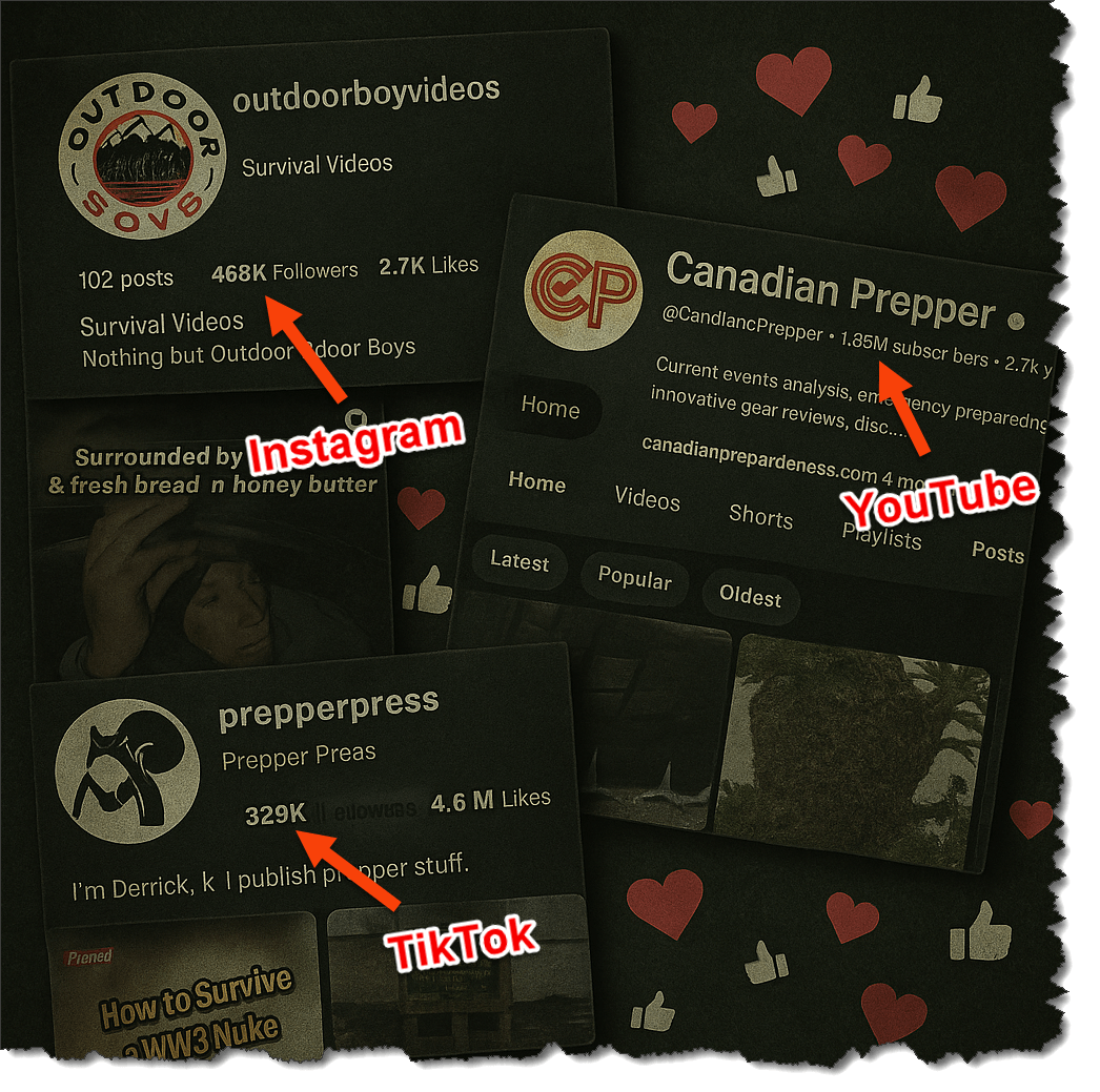 Which makes zero sense, because there are thousands of preppers on TikTok, YouTube (Shorts), and Instagram (Reels)...